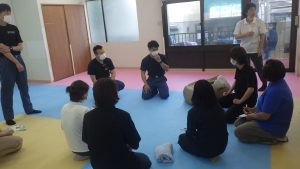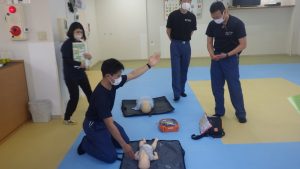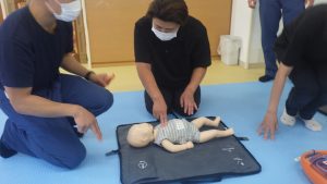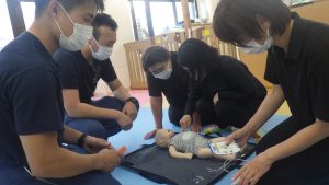あゆみでは、こどもたちや地域の方々に何かあった際、命を守ることができるように応急救護訓練を行っています。
