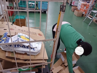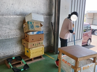 実習中の業務内容は、ほうきを使った清掃作業、ごみの回収、段ボールの解体作業でした。実習初日は緊張した様子でしたが、企業の担当者の方が丁寧にサポートしてくださり、徐々に作業などにも慣れて、3日目以降は自身から積極的に業務を行うことができました。我々ウィズの職員も、実習期間中は定期的に訪問し、ご利用者や企業の方へのサポートを行いました。