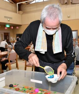 壁一面に飾られた提灯、ねじり鉢巻きのお姉さんたちが威勢よく呼び込みます。一人ひとりヨーヨー釣りや金魚すくいに挑戦しました。直ぐにポイが破ける方もいらっしゃいましたが、金魚を10匹以上掬い容器からこぼれそうな強者もいらっしゃいました。最後にかき氷でクールダウン。頭をツーンとさせながら、童心に返って真昼の夏祭りに笑顔が絶えませんでした。