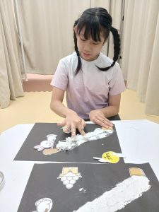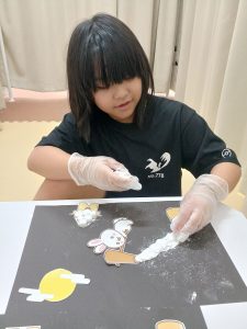 9月15日に『十五夜』の制作活動としてお月見の作品を作りました。活動では季節を感じることをねらいとして行いました。