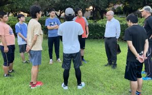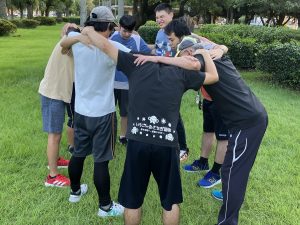 施設長からも激迎のお言葉をいただき、最後は円陣を組んで6連覇という更なる記録を更新するために気合を入れていました。