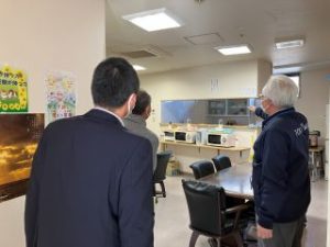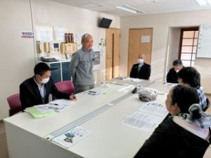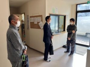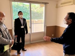 オリエンテーション後、谷山周辺に点在している各グループホームを見学、谷山中央にあるグループホームでは、公休日の利用者の方に生活のようすなど様々な質問をされていました。