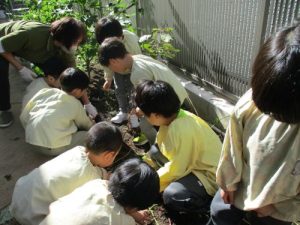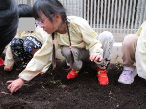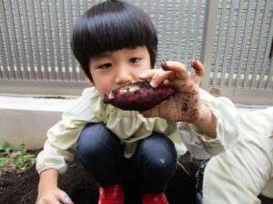 それでも奥まで掘り進めていくと、土の中から紫色のものがちらり。「これってサツマイモじゃない?」と声を弾ませながら、夢中で掘り出そうとする姿がありました❕