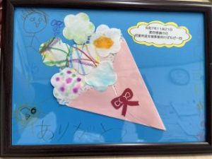 児童発達支援事業所わぜもぜ 勤労感謝の日 2025年11月25日サポートハウス サポートハウス事務所近くにある事業所「児童発達支援事業所わぜもぜ」の子供が、勤労感謝の日のお祝いに「ありがとう」の気持ちを込めて手作りの貼り絵を持って来てくださいました。ニコッとした子供の笑顔を見て、日頃の疲れが癒されました。