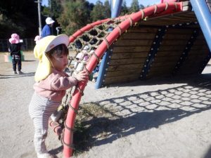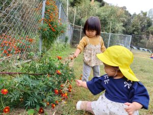 お散歩 (いちご組) 2025年12月5日石谷の森 最近は天気が良い日が多く,心地よい暖かさに包まれながらお散歩を楽しむいちご組の子どもたち。植物や昆虫に興味を示しながら,指を差したり葉っぱを触って感触を楽しんだりする姿が見られました。 気温差のある季節ですが,体調に気を付けながら,戸外活動を取り入れていきたいと思います。