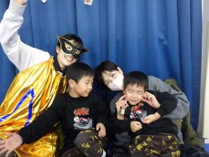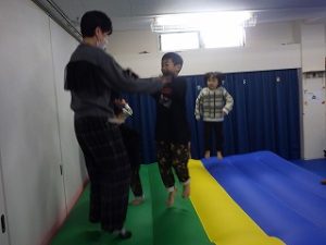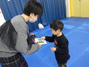 今回の親子療育では「寒さに負けない体力づくり」と題して、日頃子どもたちがひこばえで取り組んでいる様々な運動あそびを、スタンプラリー方式でご家族の方と一緒に回りました♪