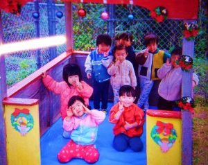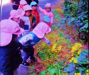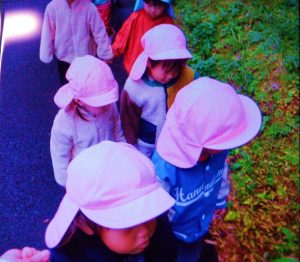 冬の寒さを感じるこの日,もも組の子どもたちは園外へ散歩に行きました。風で落ちた枯葉を踏んで音を楽しんだり,道に咲いたきれいな花を見つけたり,季節ならではの自然を楽しみました。園に帰ってからはクリスマス仕様に飾られた『みんなのおうち』にシートを敷き,皆でお弁当を食べました。食事中は素敵に飾られたおうちを眺めながら,「これすっごく美味しいね!」「明日もここでたべたいな。」と苦手な食べ物もいつの間にか口に入れながら会話を楽しんでいました。