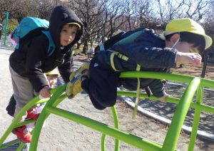 たくさんの遊具や広場に興味津々の子どもたち、たくさん走ったり、遊具で遊んでいる姿はとても可愛かったです💛かわいい猫ちゃんもいて、子どもたちも笑顔で追いかけていました🐈帰り道も寄り道をしながら帰り、いつものお散歩とはまた違う楽しさを味わうことができました✨