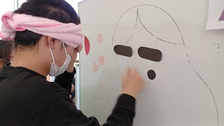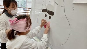 福笑い 2026年1月21日しろやまの風 お正月遊びとして福笑いを行いました。 タオルで目隠しをし,顔のパーツを貼り付けていきました。子どもたちも「ここかなあ?」と手探りでパーツをはめていき,いざ目隠しを外すと,ヘンテコな顔やバランスの良い顔など個性豊かな顔立ちに思わず笑ってしまう姿がありました。 今後も季節にちなんだ活動を行っていきます!