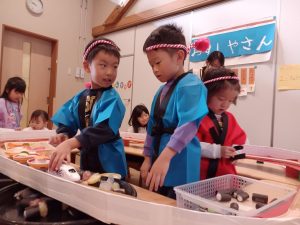 先週のプレオープンを経て,さらに良い活動になるように,やる気をもって臨む子どもたち。開始前も「本物のお寿司屋さんのように頑張る」と自分たちがイメージしたお店を目指し気持ちが高まっていました。