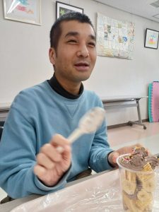 自分たちで作ったミニパフェを大きな口で食べ、最後のクリームを名残惜しそうにスプーンですくいながら完食しました。最後は「美味しかった!」と満足気な表情の皆さんでした。