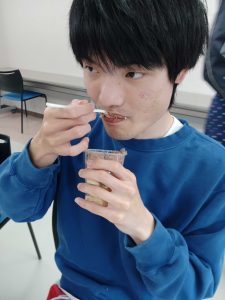 自分たちで作ったミニパフェを大きな口で食べ、最後のクリームを名残惜しそうにスプーンですくいながら完食しました。最後は「美味しかった!」と満足気な表情の皆さんでした。