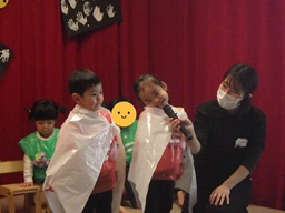 ★すみれぐみ(2歳児)…劇遊び「ばけばけばけたくん」、ダンス「オバケのばけちゃま」