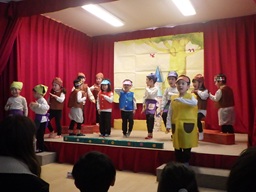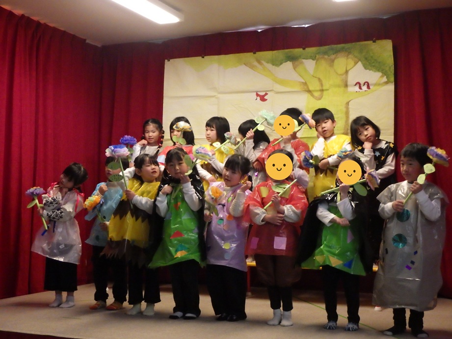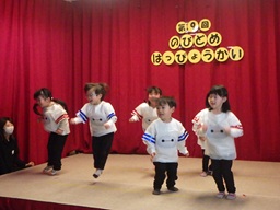★ひまわりぐみ(4歳児)…ダンス「カリスマックス」、合奏「きのこ」、オペレッタ「とんでけ とんでけ わがままむし」