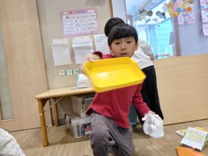 お道具箱を整理していると,「こんなに汚れがついている」「沢山使ったよね」と子どもたちと一緒に思い出を振り返りながら,成長を感じる時間にもなりました。身の回りの物をきれいにすることや物を大切にする気持ちも育ってきています。4月からは年長さんとして,どんな成長が見られるのか楽しみです。