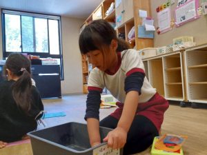 お道具箱を整理していると,「こんなに汚れがついている」「沢山使ったよね」と子どもたちと一緒に思い出を振り返りながら,成長を感じる時間にもなりました。身の回りの物をきれいにすることや物を大切にする気持ちも育ってきています。4月からは年長さんとして,どんな成長が見られるのか楽しみです。
