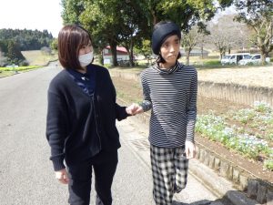 3月に公共の場の過ごし方を知ったり、季節を感じたりすることを目的として施設外活動を実施し、都市農業センターで散策を行いました。風の冷たさはまだ残っていましたが、晴天の中気持ちよく散策することができました。