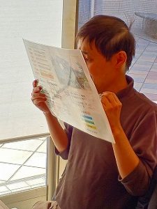 注文表をじっくり見て、それぞれ食べたいものを注文しました。商品が来るまでの間、調理場を見ている利用者さんや、置いてあったパンフレットをじっくり見る利用者さん、「ここはどこ?」と聞こえてきそうな表情であたりを見回す利用者さんとそれぞれでした。