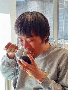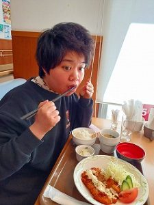 注文したものが運ばれてくると、料理からの湯気を不思議そうに見ていたり、一口口に運んで熱さを感じると手が止まったりと様々な反応が伺えました。職員が小分けして冷まして再度提供すると、美味しそうに口一杯に頬張っていました。
