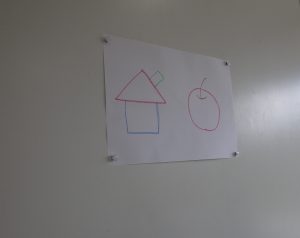 今回は、見本をよく見て模倣し、指先の巧緻性を高めることをねらいにまねっこお絵描きの活動を提供しました。形や色を観察し、三角や丸、四角などの形や複数の形を組み合わせた絵を描くことができるよう、見本提示を行いながら模倣を促しました。支援者がクレヨンを用いて、見本を提示すると、書き順や色、描く位置など自分たちで見比べ、黙々と取り組む姿がみられました。