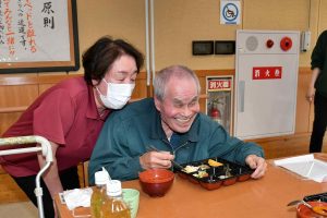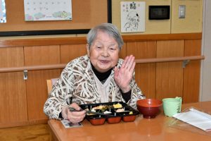 花見弁当 2026年4月11日きいれの丘 新年度の4月になりました。きいれの丘の庭にある桜が満開になり入所者さまたちも話をしながら花見をして楽しんでおりました。 本日の昼食は、桜の季節に合わせた花見弁当を昼食で食べました。彩ったたくさんのおかずに胸を弾ませる入所者さまたちの嬉しそうな笑顔が見えました。皆さん、すぐに完食されていていて私たちも嬉しく思いました。これからも季節を感じられるようなお食事を提供していき、生活する中で食べることも楽しみの1つになる機会を取り入れていきたいです。