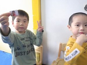隠す前に1人ずつ写真を提示すると「あ!〇〇くんだ!」「次は誰が出てくるかな?」等興味津々の子どもたち。自分の写真が出てきて皆に名前を呼ばれると、照れながらもとっても嬉しそうでした★