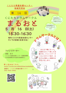 赤ちゃんからご高齢の方まで、いろいろな方々に楽しんでいただける活動なので、ドラムサークルを通して地域の一員としてのくにたち発達支援センターを知ってもらうと共に、地域コミュニティ作りに貢献したいと考えています。興味を持たれた方はぜひご参加くださいね。今回は初の祝日開催になります。お間違えの無いようにお願い致します。