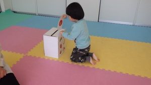 最初に約束事や手洗い等について確認すると「綺麗にするぞ!」と言って、丁寧に手を洗ったり、エプロンや三角巾を被ったりと準備をする様子が見られました。