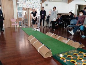 オーバルボールでは皆さん普段ニュースポーツで行っているボッチャの経験を活かして的に向かって上手に投げることができていました。予選から白熱した勝負が繰り広げられどの試合も接戦になりました。