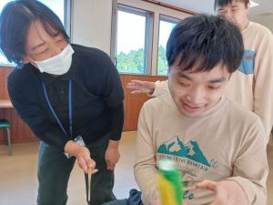 サポート明星では外部講師を招いて月に1回リトミックを行っております。講師の弾くピアノの音に合わせて、室内歩行をされたり、楽器に触れてみたり体を動かす時間になっています。先日はタンバリンや太鼓に触れられ笑顔の皆さんでした。リトミックはいつも行っている音楽活動とはまた違う雰囲気で、皆さん楽しそうに参加されています。音楽を使用した活動は皆さんお好きなので、今後も参加をお声掛けしてまいります。