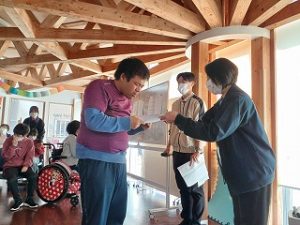 オーバルボールでは皆さん普段ニュースポーツで行っているボッチャの経験を活かして的に向かって上手に投げることができていました。予選から白熱した勝負が繰り広げられどの試合も接戦になりました。
