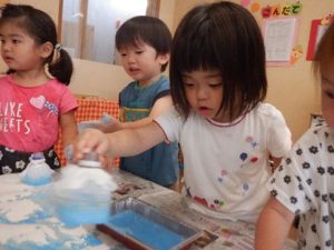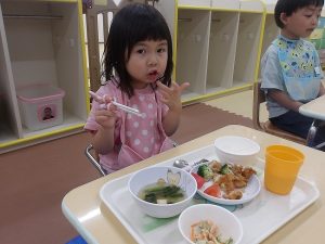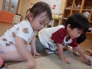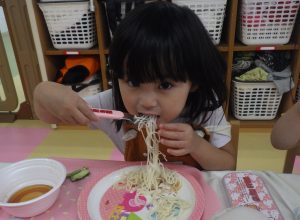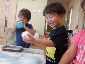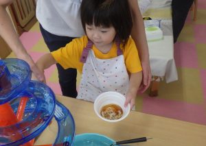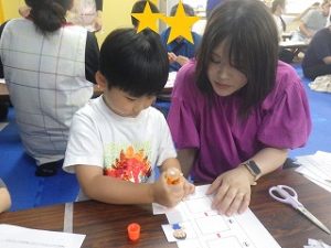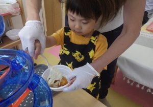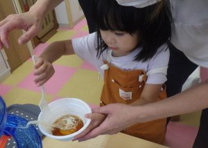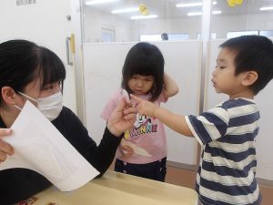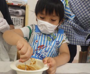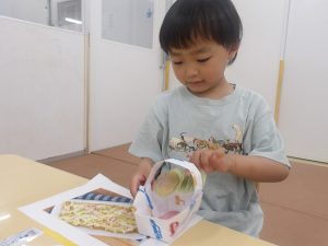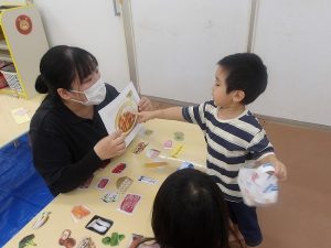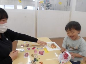 奏マーケットに到着すると、「何を買おうかな?」「楽しみだな~!」とワクワクしている様子でした。一人一人好きなお店を探し、「これも欲しいな。」と悩みながら限られたお小遣いの中で工夫して購入することが出来ていました。購入する場面では、「これください、ありがとう!」と上手にお店の人とやり取りする姿が素敵でした。