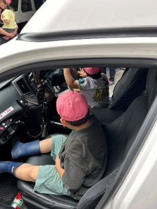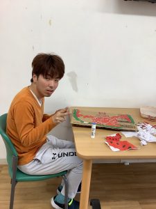 そらグループでは、11月の療育参観で近くの公園へピクニックに行ってきました。お天気にも恵まれ、ご家族と一緒に楽しく過ごすことが出来ました。午前中は、みんなでパラバルーンをした後、ライオンの製作をしました。ライオンの製作では、色付いた葉っぱをたてがみに使用しました。昼食は、いつものお給食をランチボックスに入れ、青空の下、レジャーシートを敷いてみんなで食べました。いつもより、スプーンが進んでもりもり食べていました。午後は、公園の遊具やシャボン玉などで思いっきり遊びました。秋を感じながら、みんなで楽しむことができ、とてもいい思い出になりました。