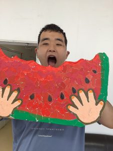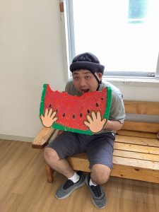 サポート明星では外部講師を招いて月に1回リトミックを行っております。講師の弾くピアノの音に合わせて、室内歩行をされたり、楽器に触れてみたり体を動かす時間になっています。先日はタンバリンや太鼓に触れられ笑顔の皆さんでした。リトミックはいつも行っている音楽活動とはまた違う雰囲気で、皆さん楽しそうに参加されています。音楽を使用した活動は皆さんお好きなので、今後も参加をお声掛けしてまいります。