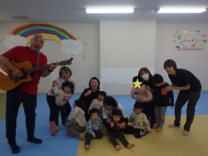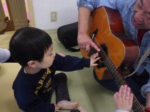 いざギターが鳴り出すと、みんなの視線はギターにくぎ付け!音楽に合わせて子どもたちなりの表現で踊ってくれました。