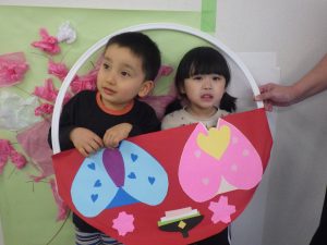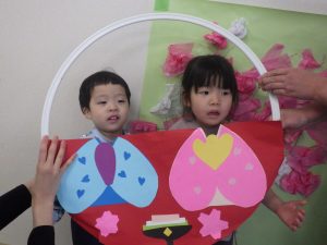 お雛様当日に、歌って踊るパーティーを行いました。