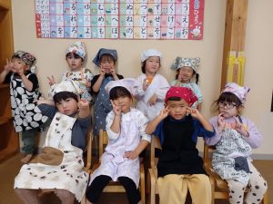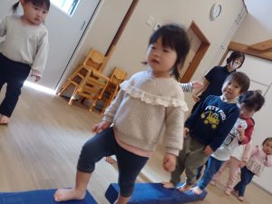 水曜日に行っている体操の日。石谷の森こども園オリジナルのたけのこ体操で体をほぐしてから,