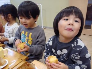 とてもいい色に焼き上がり、子どもたちもおいしそうに食べていました。