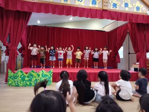 発表会に向けて,オペレッタや竹太鼓の練習にみんなで一生懸命取り組んでいます。最初は恥ずかしさや照れてしまう姿が多かった子どもたちでしたが,練習を繰り返すうちに元気に歌ったり,大きな声でセリフを言ったり自信をもって表現する姿が増えてきました。