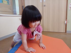 運動遊びが大好きないちご組さん。今回はマット運動を行いました。