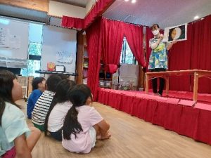 紙芝居を見たりクイズをしたりして興味津々な様子の子どもたちでした。