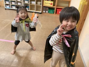 仮装をし,各部屋へ遊びに行くと,少し緊張気味で不安になっている友だちもいましたが