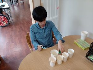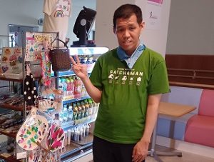 他にも作品販売や4グループが作成したフォトスポット、輪投げ、ヨーヨー釣り、ピンポンカップイン、ボール転がしの4つのミニゲームコーナーがあり、お買い物やゲームに笑顔で取り組まれる姿が見られました。会場にはぐりぶーも登場し、ハイタッチや写真撮影を楽しまれていました。