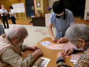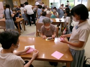 入所者の皆様にとっては、孫のような(孫よりも年下かも)女子高生。