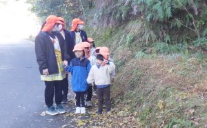 最初に約束事や手洗い等について確認すると「綺麗にするぞ!」と言って、丁寧に手を洗ったり、エプロンや三角巾を被ったりと準備をする様子が見られました。