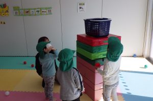 最初に約束事や手洗い等について確認すると「綺麗にするぞ!」と言って、丁寧に手を洗ったり、エプロンや三角巾を被ったりと準備をする様子が見られました。